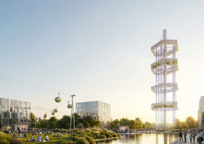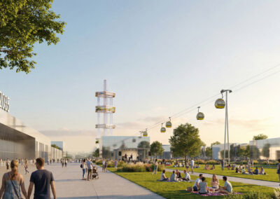 Ergänzt wird das Konzept durch modulare, ressourcenschonende und rückbaubare Strukturen, die eine flexible Nutzung ermöglichen und über das Jahr 2035 hinaus Bestand haben. Damit folgt das Projekt konsequent den Prinzipien der Kreislaufwirtschaft und setzt Maßstäbe für nachhaltiges Bauen im internationalen Kontext.