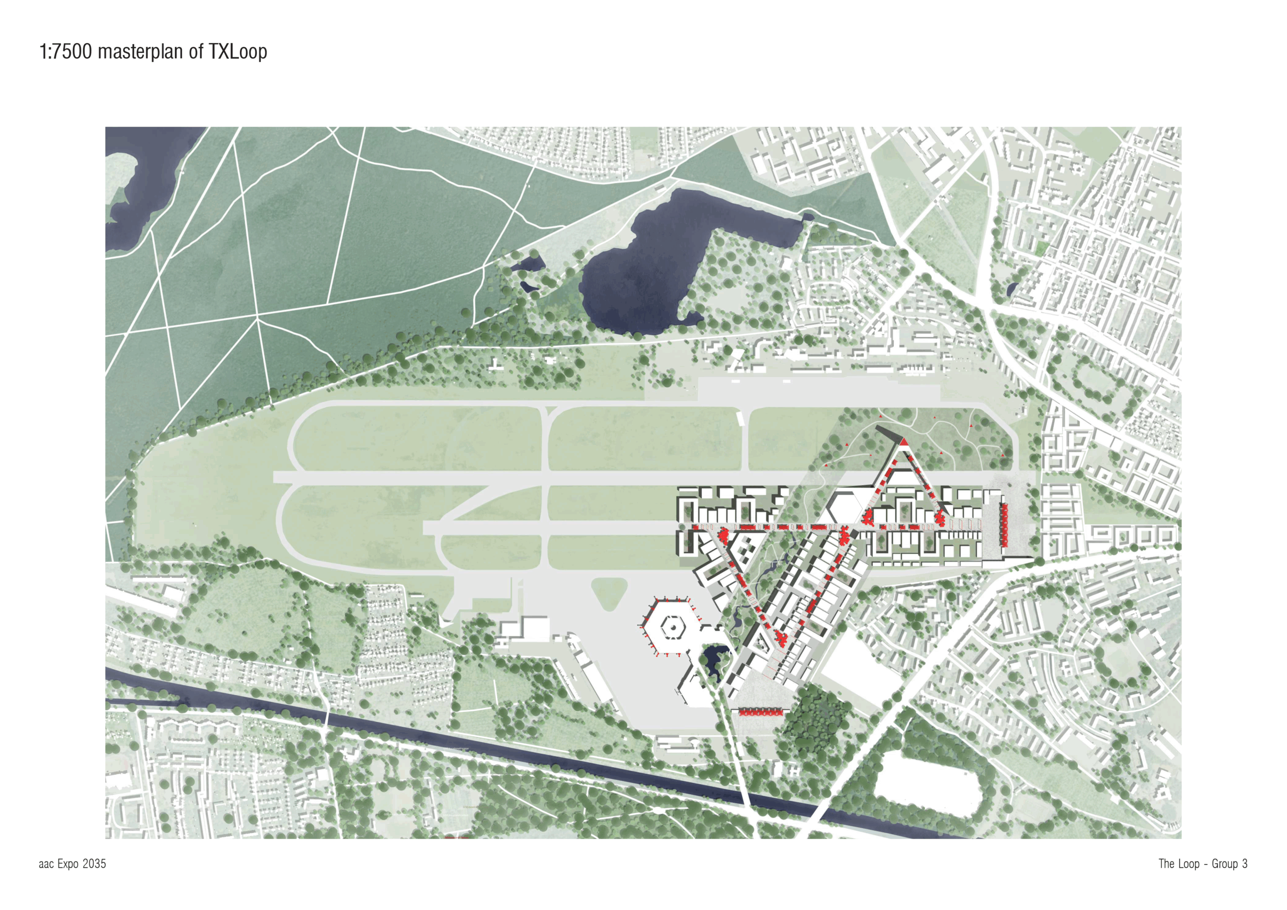 Vier Gruppen von internationalen Studierenden der Academy for Architectural Culture (aac) entwickelten Konzepte für eine mögliche Ausrichtung der EXPO 2035 Berlin auf dem Gelände des ehemaligen Flughafen Tegel. Dabei untersuchten sie, wie das denkmalgeschützte architektonische Erbe des Flughafens in ein zukunftsorientiertes Expo-Gelände integriert werden kann und entwickelten Ideen für die Nachnutzung von Ausstellungsgebäuden, Parks und Infrastruktur.